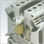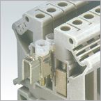 | 具有基型接線端子在相同的空間位置上兩倍的接線容量,其上下兩層在設(shè)計上錯開了2.5mm 的空間,不僅在視覺上條理分明,同時在上層接滿線的情況下,螺絲刀也能在下層區(qū)域內(nèi)很方便的接線作業(yè),且上下層標識清晰。 | 采用刀閘形式進行線路的通斷操作,其功能同樣具有試驗型端子的功能。其接觸電阻小,而載流量可達16A,閘刀鈕以鮮橙色標志清晰醒目。 | 設(shè)計特點是采用分斷旋臂(或螺絲帽)接入G型熔絲管,操作十分方便,絕緣外殼采用全封閉式,安全可靠。帶發(fā)光二極管LED顯示的端子會給出保險絲的通斷信號。 | 起開關(guān)作用的可滑動金屬件能通過端子壓線框所能承受的最大工作電流。切換時用螺絲刀旋松螺釘后移動滑塊,則開關(guān)位置清晰可見,其兩端設(shè)有測試插座,與相應(yīng)的試驗插頭可形成測試連接,測量電流時可不中斷操作。 |