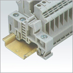 | 中心聯(lián)絡(luò)件 用于連接相鄰端子形成聯(lián)絡(luò)端子組,每10作為一組,可任意分割;亦可加裝短接片實現(xiàn)10位以上的聯(lián)絡(luò)組合;用帶絕緣套的螺釘與端子導(dǎo)電片緊固連接。 | 邊插聯(lián)絡(luò)件 在端子中央為滿足其它功能而無法中心聯(lián)絡(luò)時而采用接線孔連接形成聯(lián)絡(luò)端子組的方式。但注意因?qū)Ь€須壓在導(dǎo)電片的下面而使連接空間減少了一個導(dǎo)線截面的等級。每組10位可任意分開,背部有塑料絕緣層以防電擊。 | 跨接聯(lián)絡(luò)件 用于端子中央任意跨越聯(lián)絡(luò)不相鄰的端子形式成跨接聯(lián)絡(luò)端子組。聯(lián)絡(luò)點采用銅制導(dǎo)電塊(管)實現(xiàn)在聯(lián)絡(luò)片和端子導(dǎo)電件間的電氣連接,并用帶絕緣套的螺釘使之緊固。 | 分組隔板 用于各端子組的分隔,具分組視覺和電氣隔離的雙重效果。 | |||